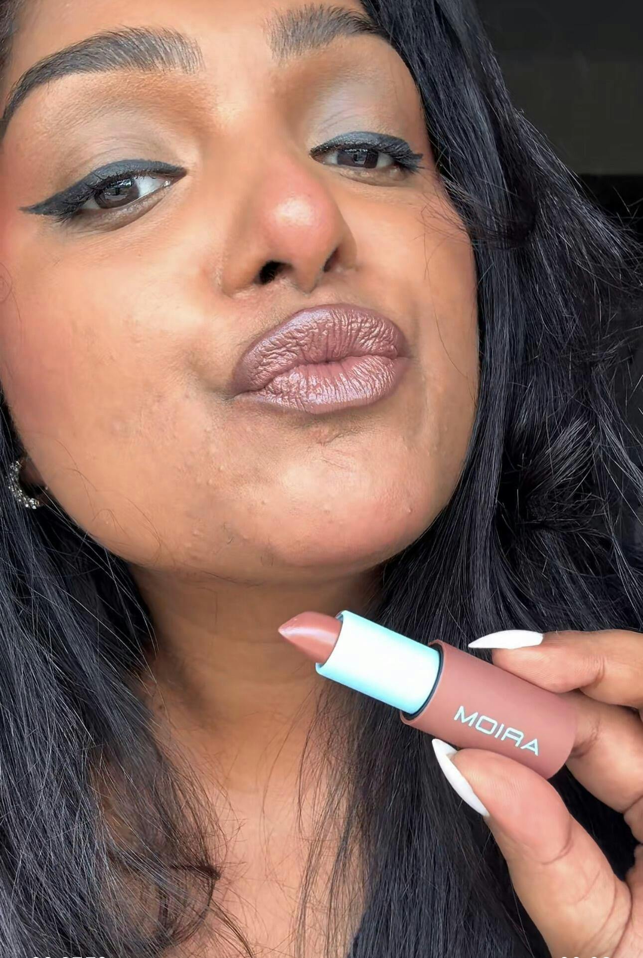 Chic Satin Lipstick: a modern nod to Y2K style, blending bold attitude with city-chic sophistication. Its creamy, hydrating formula glides on effortlessly, delivering full-coverage color with a soft satin finish that defines and enhances your lips. Enriched with nourishing Vegan Squalane, Rosehip Oil, Camellia Seed Oil, Argan Oil, and Sodium Hyaluronate, this lipstick keeps lips moisturized, smooth, and irresistibly comfortable.