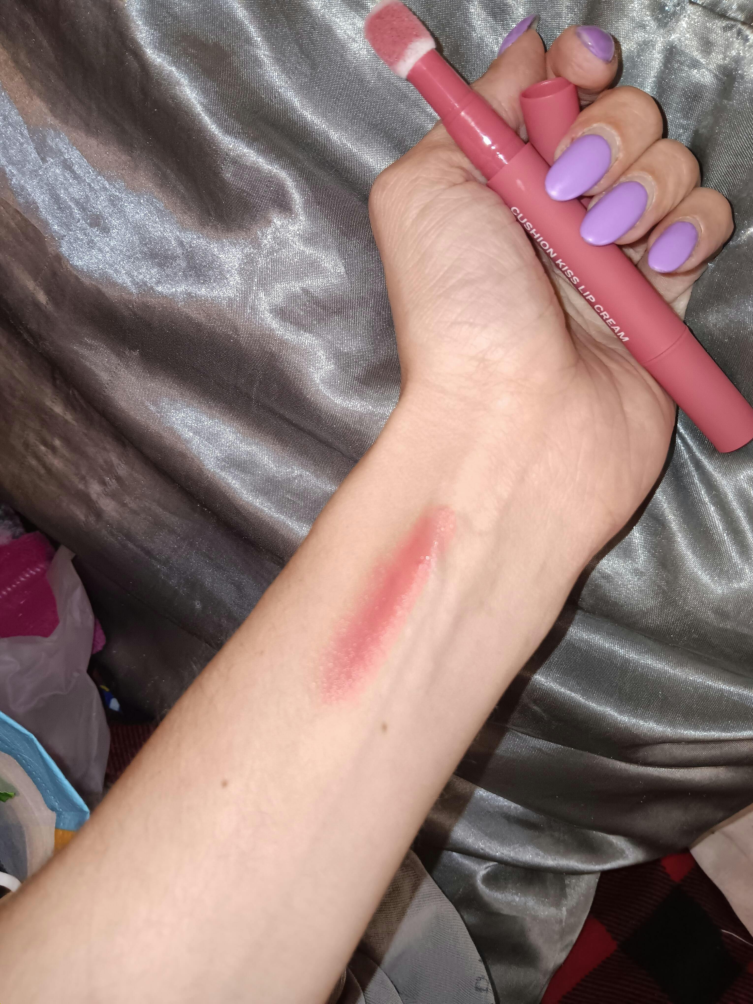 Cushion Kiss Lip Cream delivers a smooth, soft-matte finish with effortless comfort. This versatile 2-in-1 formula glides on seamlessly, melting into the lips for a blurred, velvety look that lasts up to 12 hours, without smudging or transferring. Its creamy, lightweight texture builds easily, giving you customizable color that feels barely there. The cushion applicator features a plush, enlarged brush head designed for precision and a luxurious application every time. With 16 stunning shades to choose from, Cushion Kiss Lip Cream will be your go-to lip day and night!
