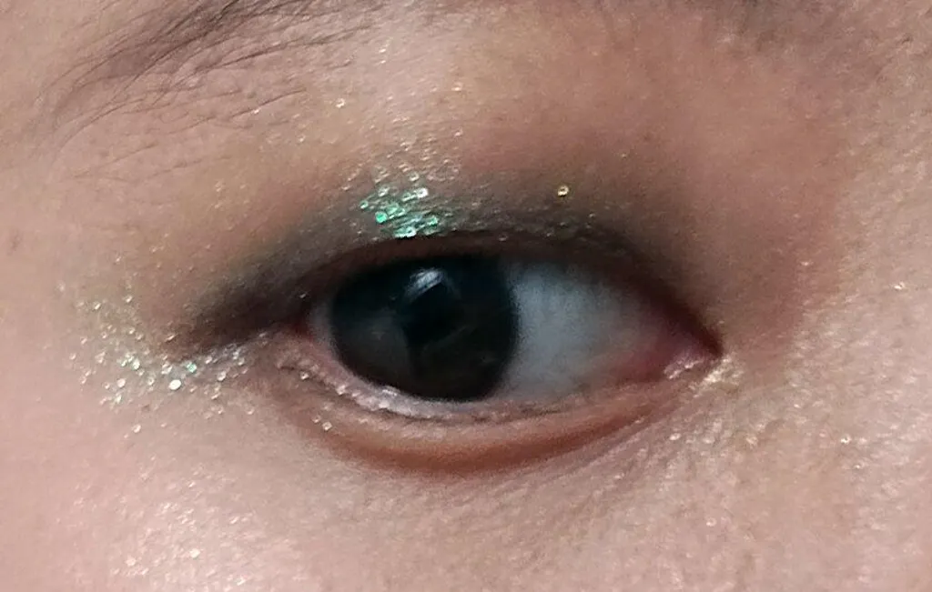 I originally thought that the color of Neptune would be significantly different from Moira's Chroma Light Shadow in Aquamarine - I thought Neptune would be less saturated, more pale and frosty. But as it turns out, they are quite similar (imo) in color, but perform differently. It's like Neptune is Aquamarine's fraternal twin but born a few seconds/minutes later (and therefore is a tiny bit of a baby sister) ;p Despite how they look in the pan, since both have a translucent base, when worn (especially if in a sheer application that builds up the base color less), both have a light aqua sparkle that is mostly interchangeable. The differences are: Neptune has a slightly smaller glitter, and it has a little bit of iridescence, so at some angles you can see a bit of light pink and lilac in addition to the aqua; whereas Aquamarine does not have multiple colors, but its aqua color is a bit stronger, and the glitter particles are a bit bigger. Because of this, Aquamarine overall looks a little bit flashier, glitzier, a bit foil-like, and bolder, whereas Neptune is more a wearable sparkle shimmer for everyday. But besides of this, I did like the experience of wearing Neptune a lot better - its application is a lot smoother and more even, I felt, than Aquamarine, which feels a little bit drier, crumbly, rough, and patchy, with a little fallout that can get in the eyes and on the cheeks (but not too bad, it's still wearable). In that sense, Neptune seemed to fix a lot of the flaws I found with the formula of the shade Aquamarine in particular (haven't had those issues with the other Chroma Light shades so far). I also tried layering Aquamarine on top of Neptune, and that actually was nice - you kind of get the pros of both that way: Aquamarine imo is not very good at giving much of a base color, even though its glitter color is pretty - so it kind of leaves something to be desired when used alone. But Neptune does that well on its own, so one could layer Aquamarine on top to intensify the aqua color a bit more and the level of sparkle. That said, if I had to pick one, I would be plenty pleased with Neptune on its own.
