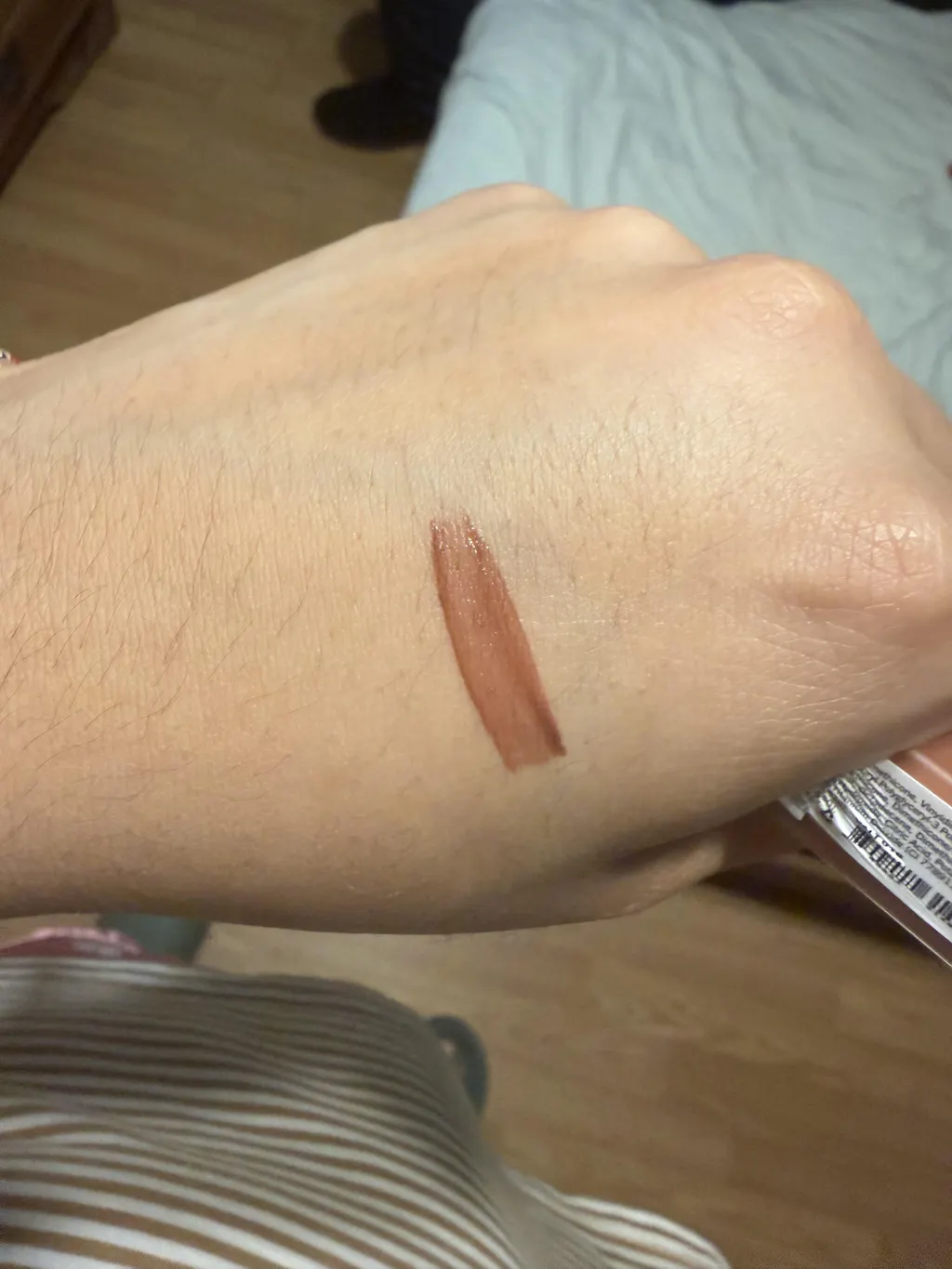 Lovely shade but just too close to my actual lip color!! Kind of looks like nothing on my lips!! Has a great feel on the lips, no transfer after the quick dry down!!! Definitely a good shade for lighter skin tones.